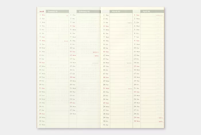 MIDORI TRC Traveler’s Notebook 2018 週間直式手帳